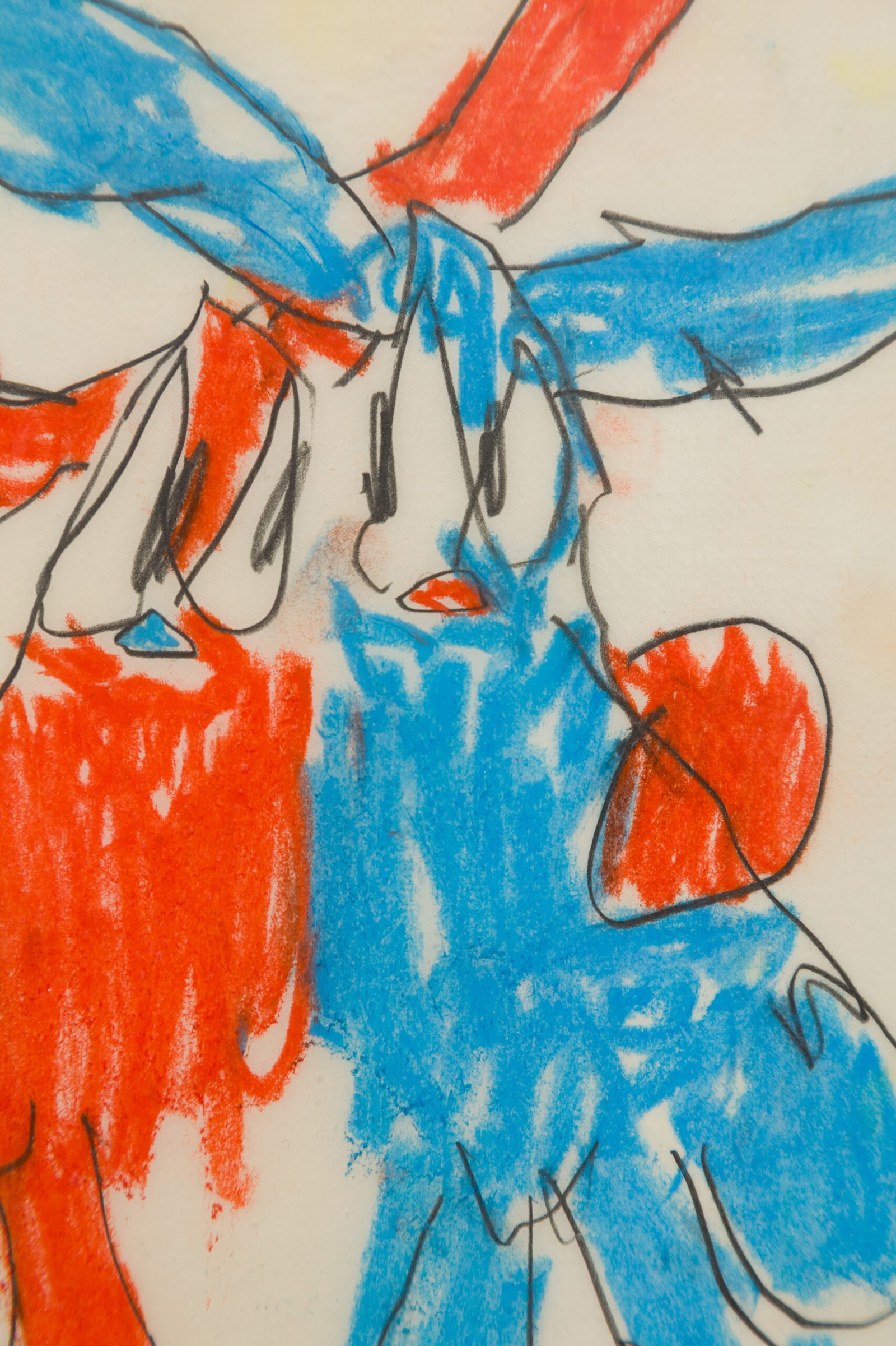 Soft pastels, pencil, paper, and acrylic resin on canvas.