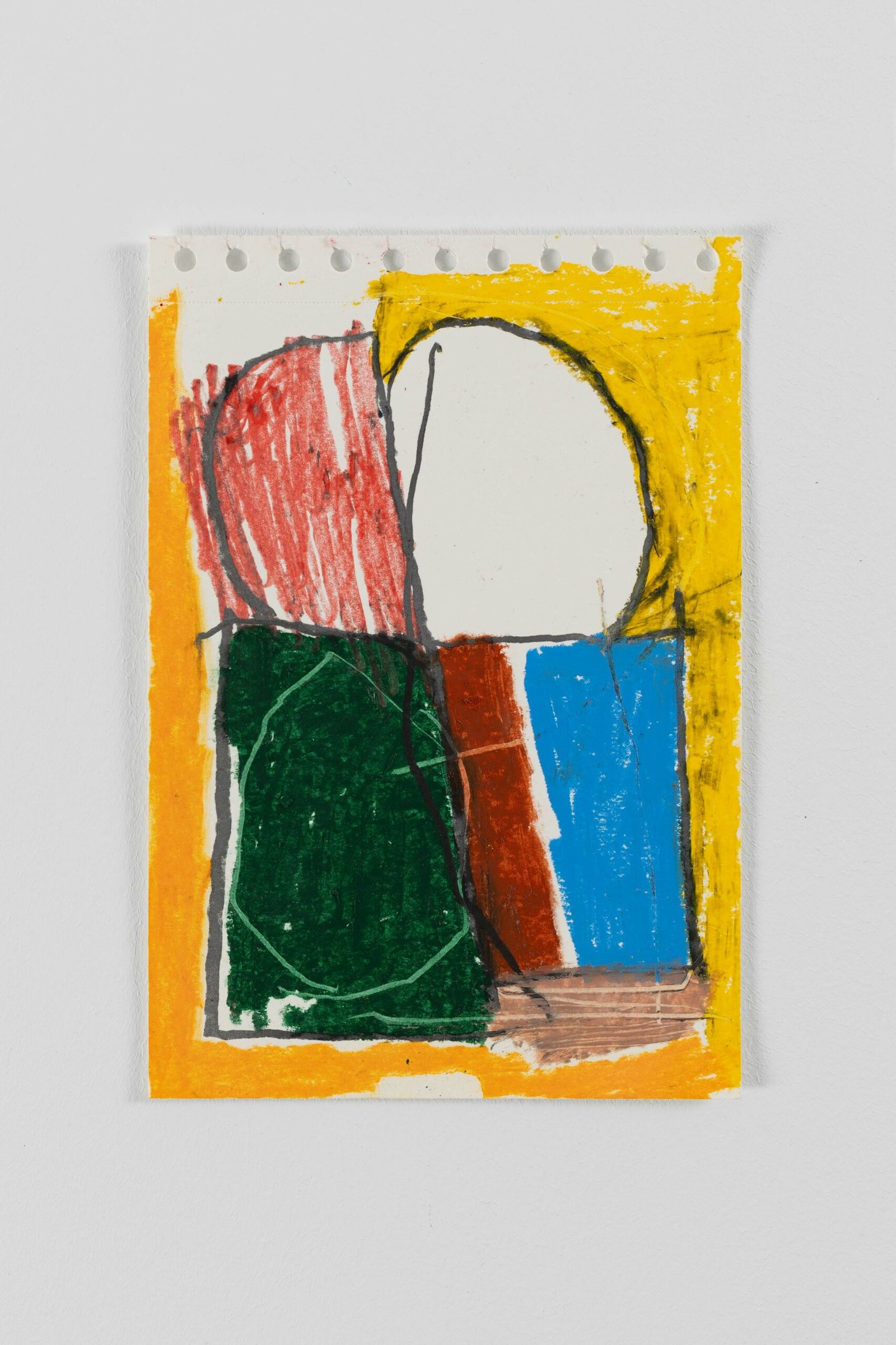 Acrylic, oil stick and charcoal on paper.