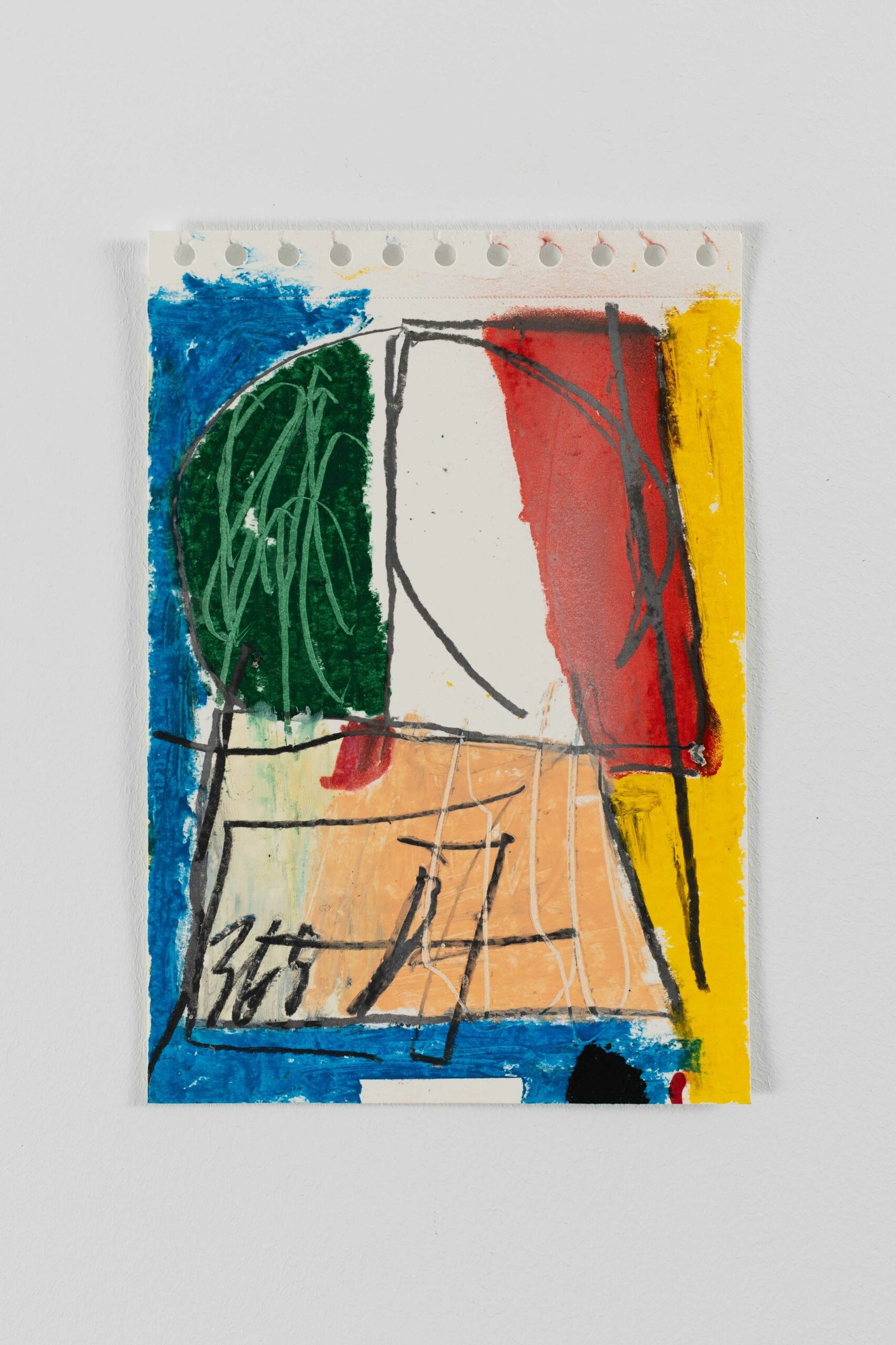 Acrylic, oil stick and charcoal on paper.