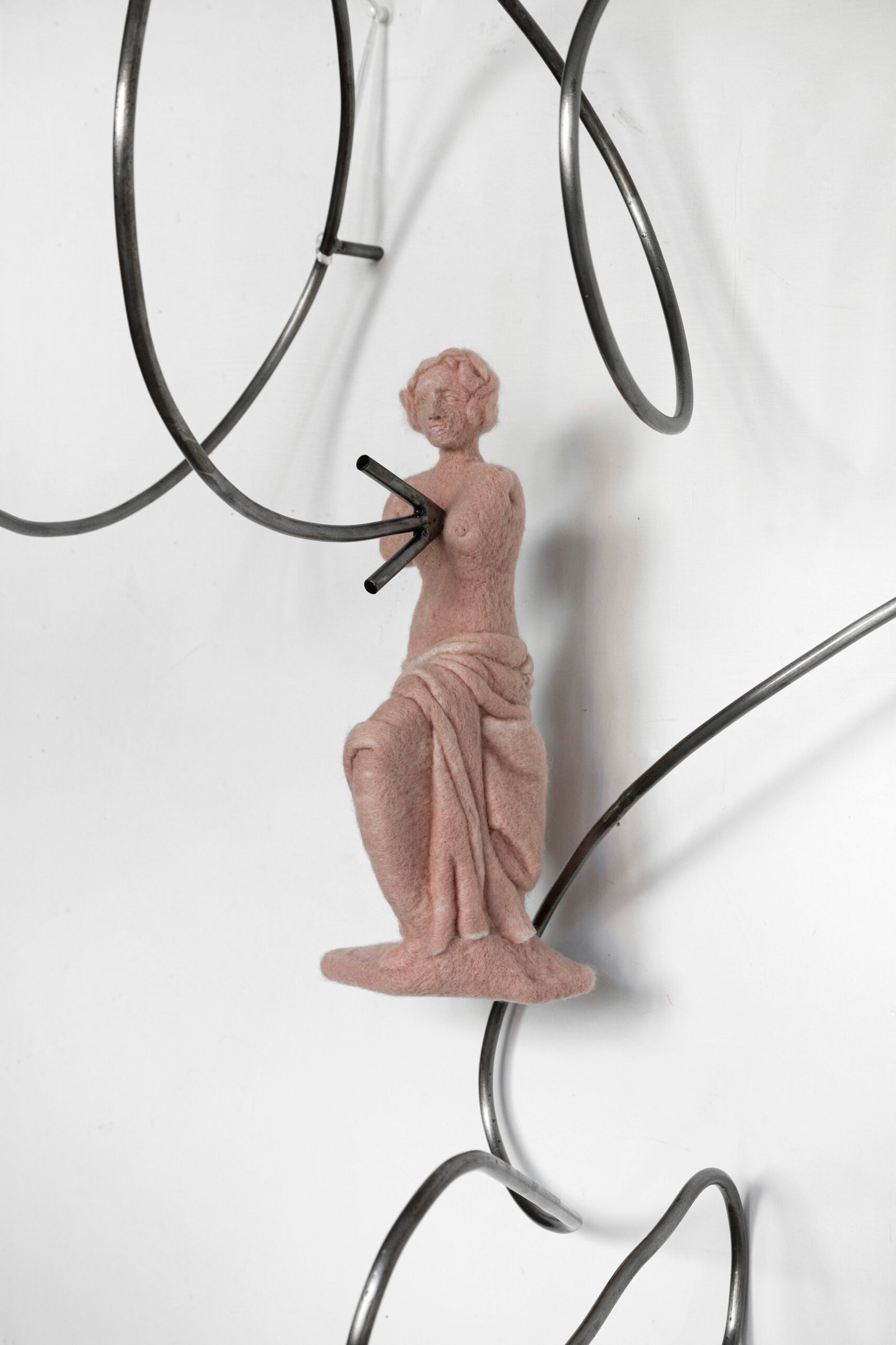 Wool sculpture filtered with metal base